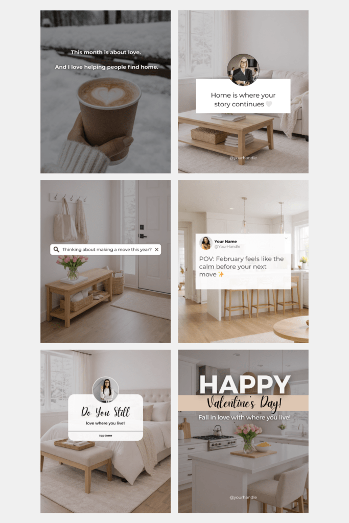 People do not follow realtors just for listings. They follow people they feel comfortable with. Valentine’s Day content is the perfect time to show warmth, care, and authenticity.